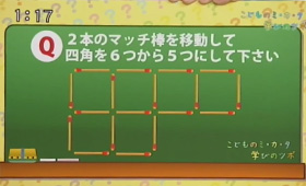 三浦さん:「ご家庭にみなさん、マッチ棒がないという方は、つまようじでもいいのでですね、ちょっとご用意していただきたいと思いまーす。今回はね、頭のトレーニングですよ」