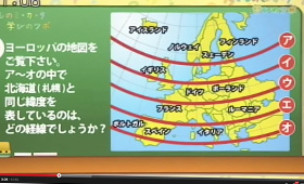 福崎学院長:「はい、こちらはヨーロッパの地図です。この中に北海道と同じ緯度の線があります。どの線でしょう?」
