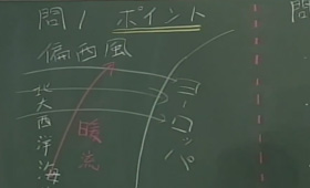 福崎学院長:「はい、エだと、北海道の緯度としては寒い地域になるはずですよね。でもそのヨーロッパが、あたたかい気候である理由は南のほう暖かい海流によって起こる、偏西風という西からの風が関係しています」