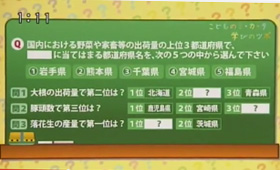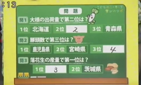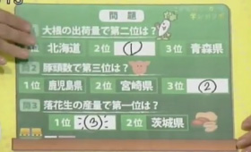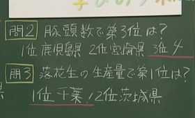 三浦さん:「すごい。はい、問1大根の出荷量2位も千葉県、そして問2豚の頭数第3位も、千葉県。落花生1位は迷わずもがな千葉県ということで」