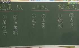 三浦さん:「はい。ということでこんな感じで、みなさんのお名前から一文字とったものをお答えいただきたいと思います。さあ、こちらです。黒板の前に出てきていただいて実際にお書きいただきたいと思います」