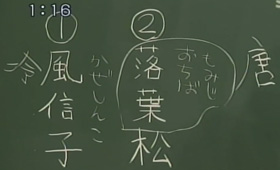 山中学院長:「ヒントとして、松はそのまま【まつ】と読みます。なんとか松ですね。漢字の書き方としては、【唐】」