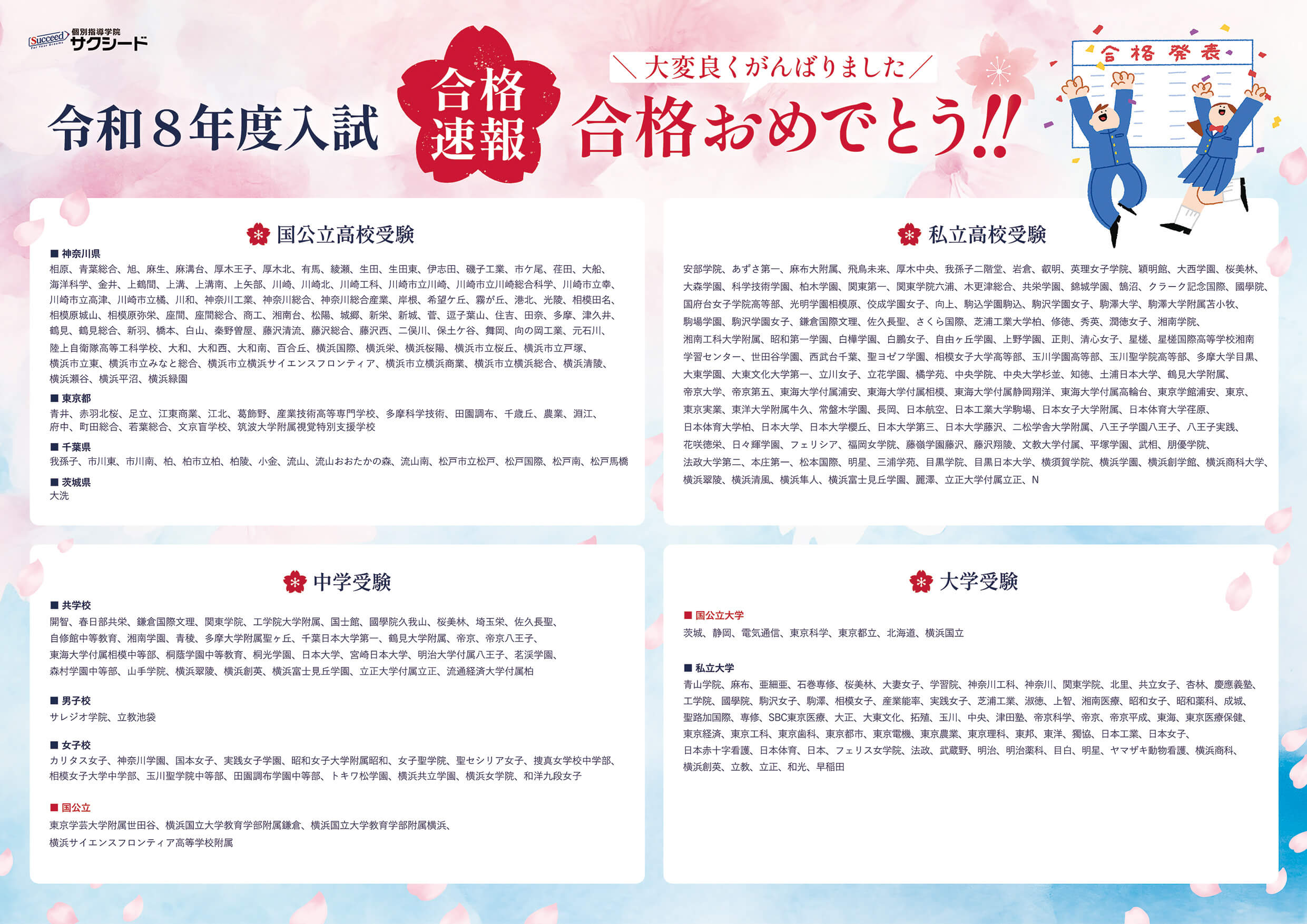 合格した生徒、保護者の皆さま、おめでとうございます!!